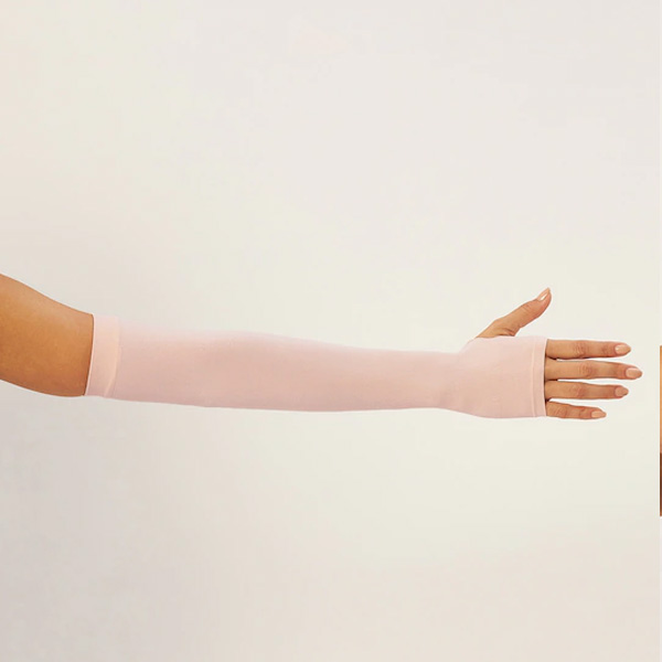 A pair of nude solid UV protection arm gloves